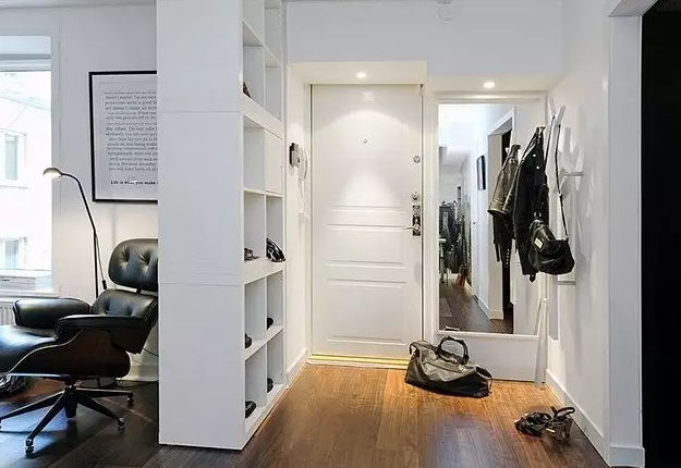 小戶型、一居室,床和門口離得近,不如在玄關(guān)處安裝一個(gè)大型置物架,不僅收納出門衣物,還能履行房間里的其他收納任務(wù)。只要你不擺的太滿,就不會(huì)影響采光。
