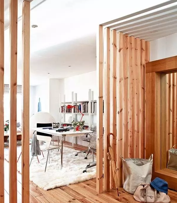 ▲木條屏風(fēng),和地板相得益彰