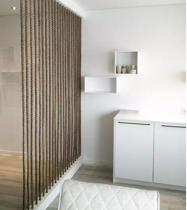 ▲麻繩屏風(fēng),軟化棱角分明的冷色空間