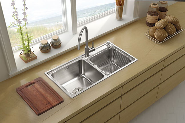 清理臺面時菜??ㄔ诹瞬伺柽吘?,廚余垃圾堵住了下水口,洗菜時水花四濺。廚房是家務最多最亂的地方,這些看似習以為常的問題其實并不是不能解決的,水槽選擇好問題就能解決一大半。那水槽該選擇什么樣的比較好呢?我覺得還是雙槽好,鍋碗瓢盆分的開,洗菜、洗碗兩不誤。