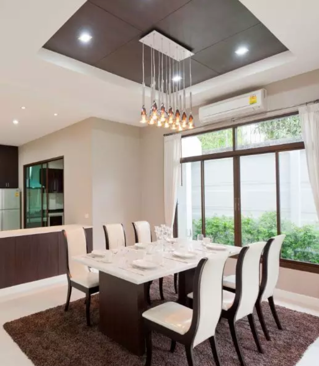 在選擇餐廳吊頂?shù)臅r(shí)候,建議選擇十分容易清潔的扣板材料。餐廳是我們進(jìn)餐的地方,久而久之餐廳吊頂上會(huì)沾一些水蒸氣和油污,時(shí)間長(zhǎng)了會(huì)滋生細(xì)菌,所以這里的吊頂易清潔很重要。
