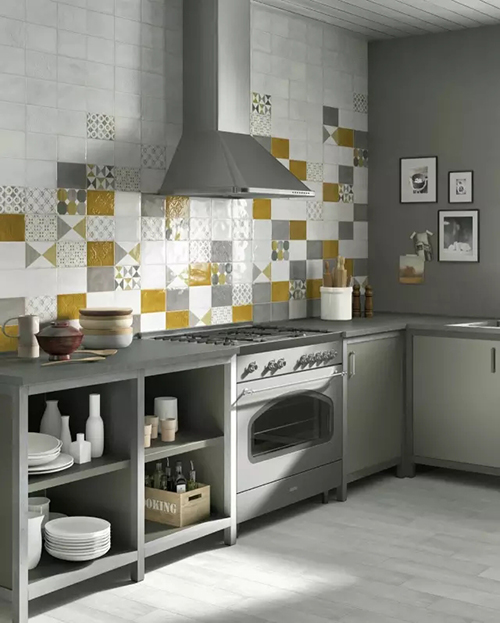 這種方法需要一定的設(shè)計(jì)功底,或者參考一些精美的空間圖片進(jìn)行布局,不然會讓空間顯得凌亂無章。多用于廚房、衛(wèi)浴間。