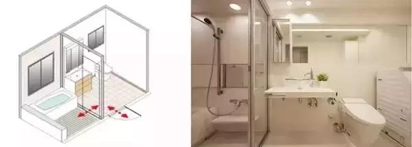 這種做法比較類似國內(nèi)最近開始流行的干濕分離的做法。占用空間并不大,但是能夠比較有效的阻止水蒸氣災害。
