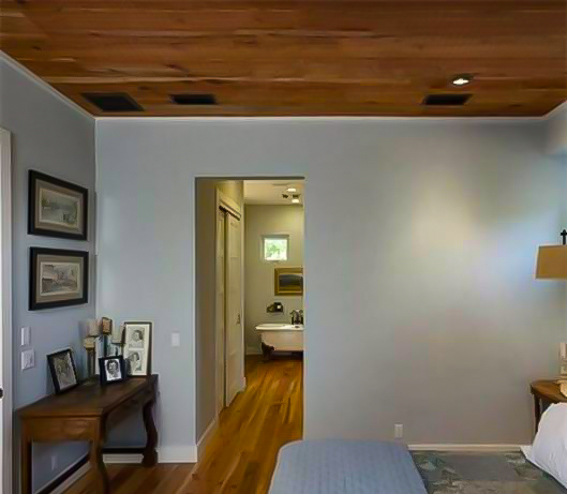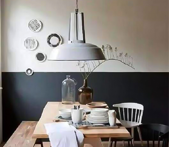 半墻指的是將墻面一分為二,分別刷上不同顏色的墻漆。就如圖二所示,下半部分為深色,上半部分則為淺色,這樣的層次連接可以拉伸我們的視覺(jué)效果。