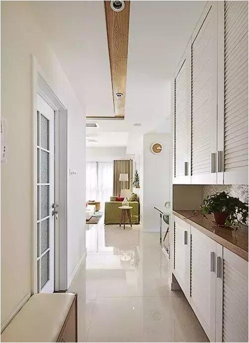 家里的柜子不能少,玄關(guān)鞋柜分上下兩層很實(shí)用,底部留空可以用來放鞋子。