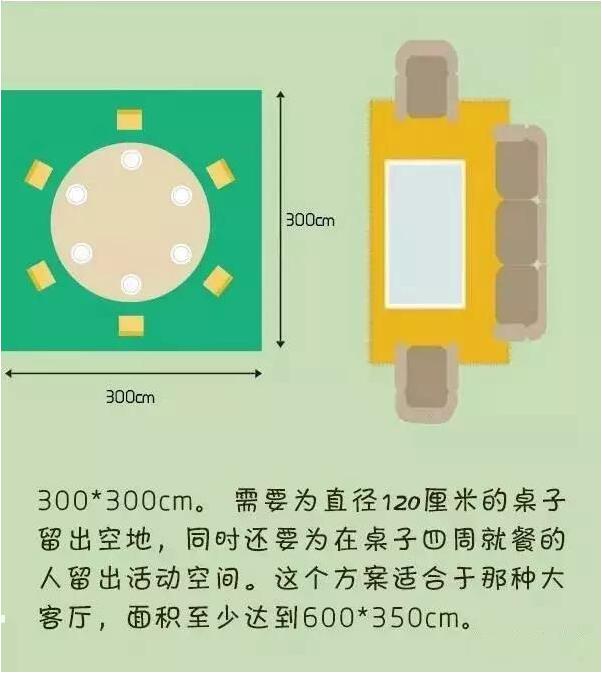 ▼一張供六個(gè)人使用的桌子擺在起居室里面要占多少面積?