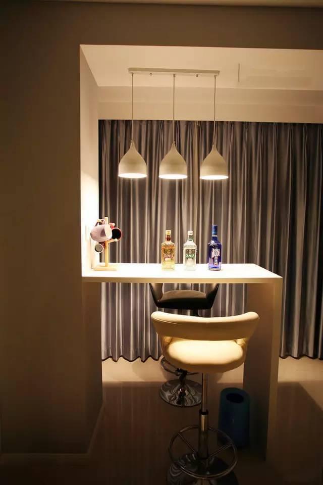 小巧的吧臺(tái)占據(jù)的位置非常小,利用陽臺(tái)和客廳之間的位置,做上一個(gè)小吧臺(tái)吧,這里的光線又好,晚上欣賞夜景也方便,實(shí)在是提升吧臺(tái)浪漫程度的一個(gè)好地方!