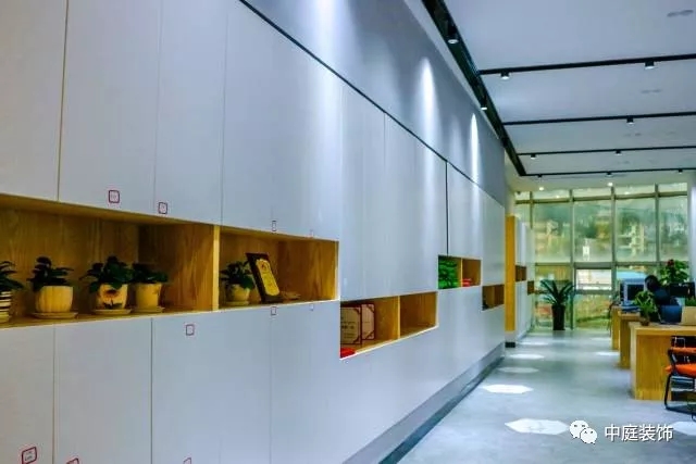 一進(jìn)去就看到一排整潔的白色儲物柜,一盆盆綠植生機(jī)勃勃。