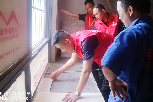 深入、細致、嚴謹、務實、細節(jié)體現專業(yè)。經業(yè)主同意后,丁總、吳總針對鋪貼飄窗瓷磚如何既能為業(yè)主減少成本,又能增加美觀度進行研究討論,并對鋪磚師傅進行實操指導。
