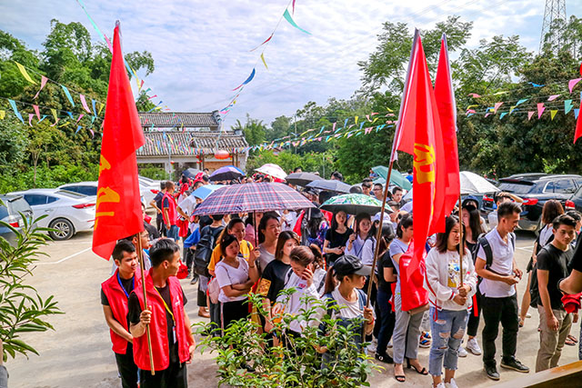 全體員工在公司樓下集合完畢,等待出發(fā)