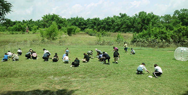 在草坪上捉雞和撿雞蛋的比賽,需要隊員之間相互合作,相互協(xié)調(diào),相互幫助,才可以快速完成任務(wù),贏得比賽。同時也增強(qiáng)了各部門、同事與同事之間的密切溝通交流,有利于提高團(tuán)隊的凝聚力。