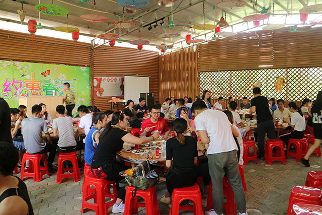 小憩時刻,與家人們共同享受美味佳肴。在品嘗美食時刻,主持人張經(jīng)理,邀請員工代表發(fā)言感想。