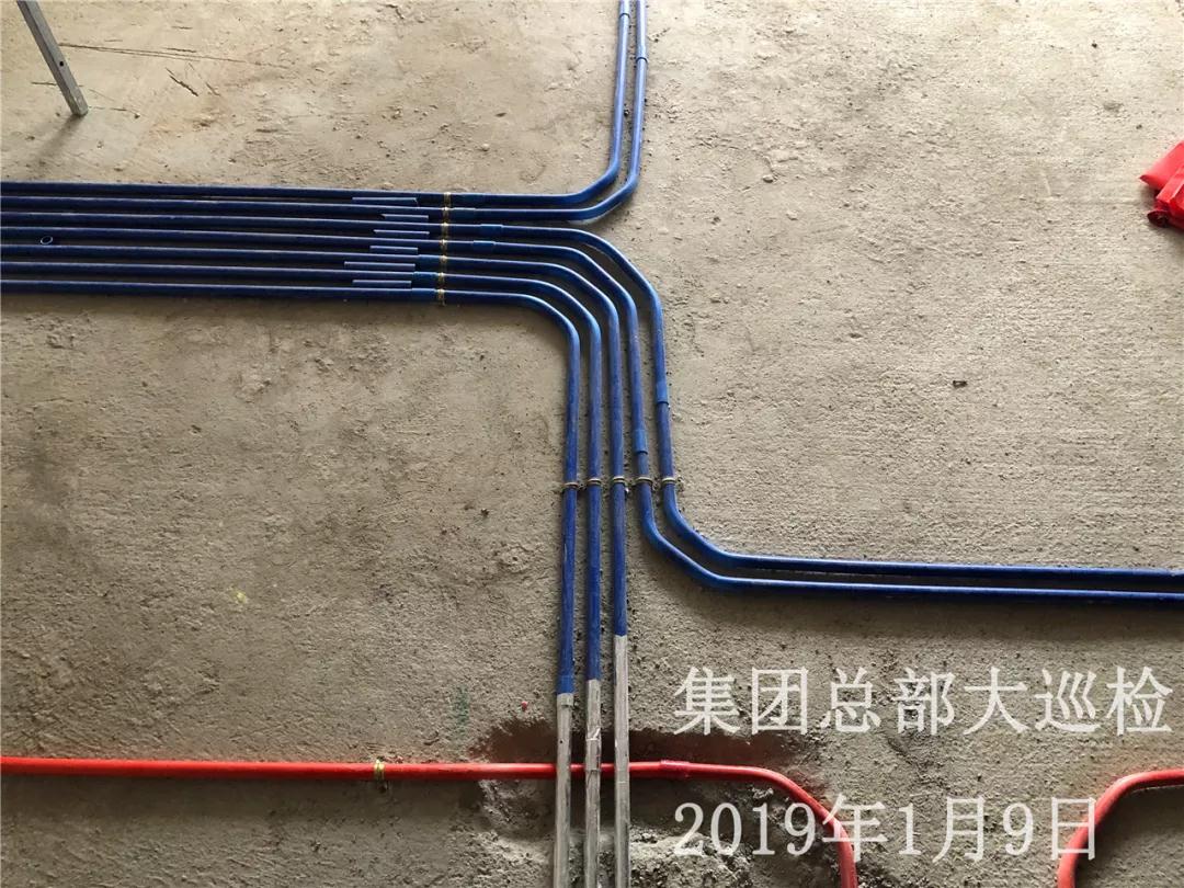 水電線管鋪設(shè)橫平豎直,管和管之間留有足夠縫隙,以便鋪設(shè)地磚時水泥砂漿進入管下,防止地磚后期出現(xiàn)空鼓。強弱電交匯處做錫紙包裹保護。