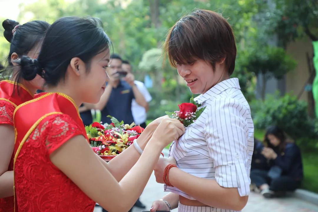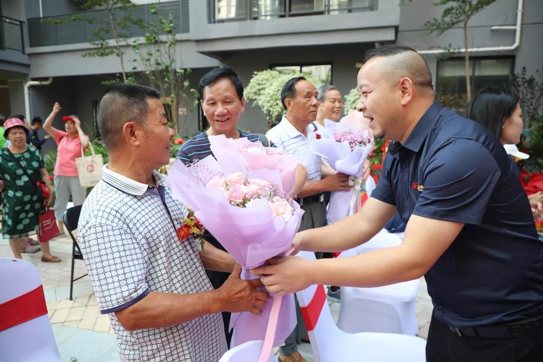 ▲同時,臺下的中庭家人們?yōu)闃I(yè)主獻上手捧花,并送上誠摯的祝福。