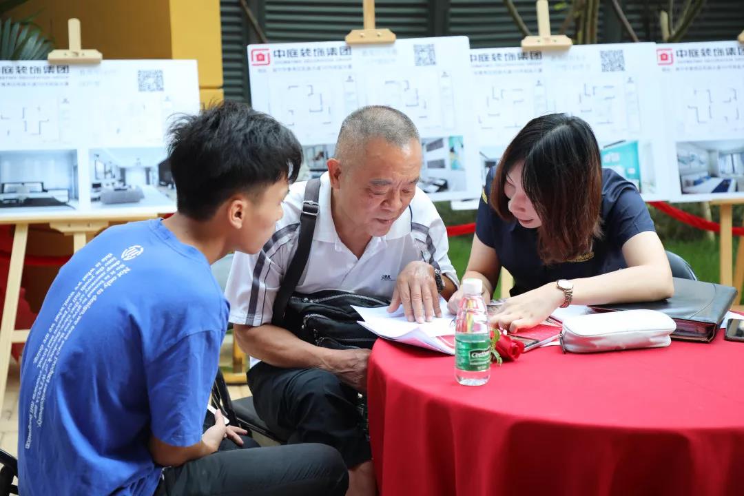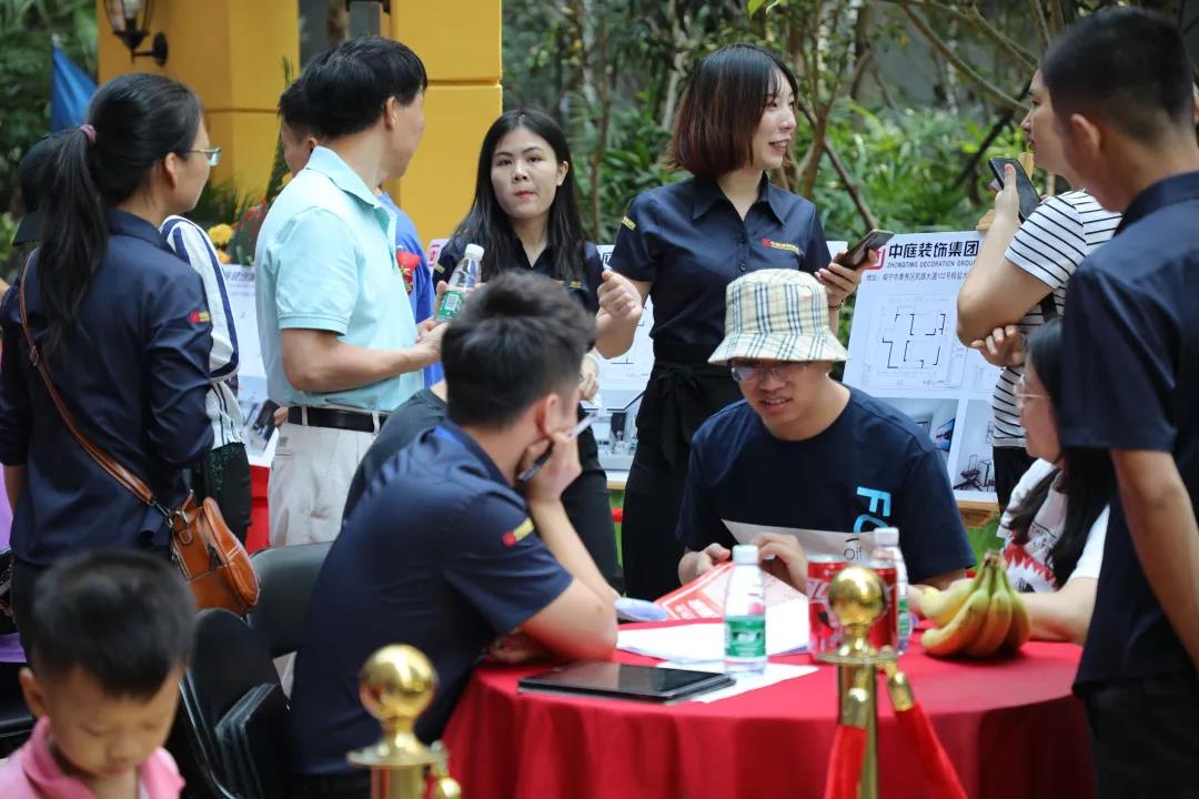 ▲現(xiàn)場設計師團隊與業(yè)主朋友們熱情交流,為業(yè)主朋友們的裝修問題答疑解惑,力爭帶來最好的裝修服務。