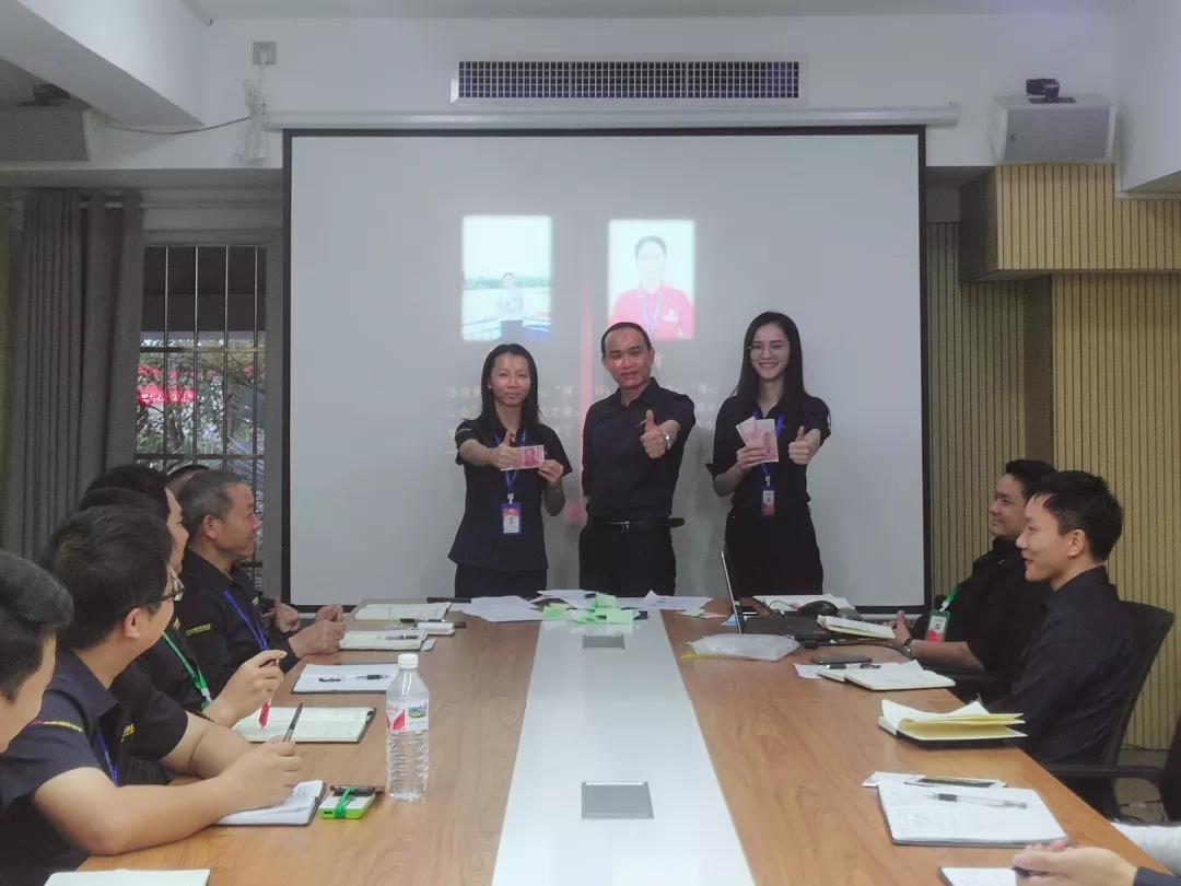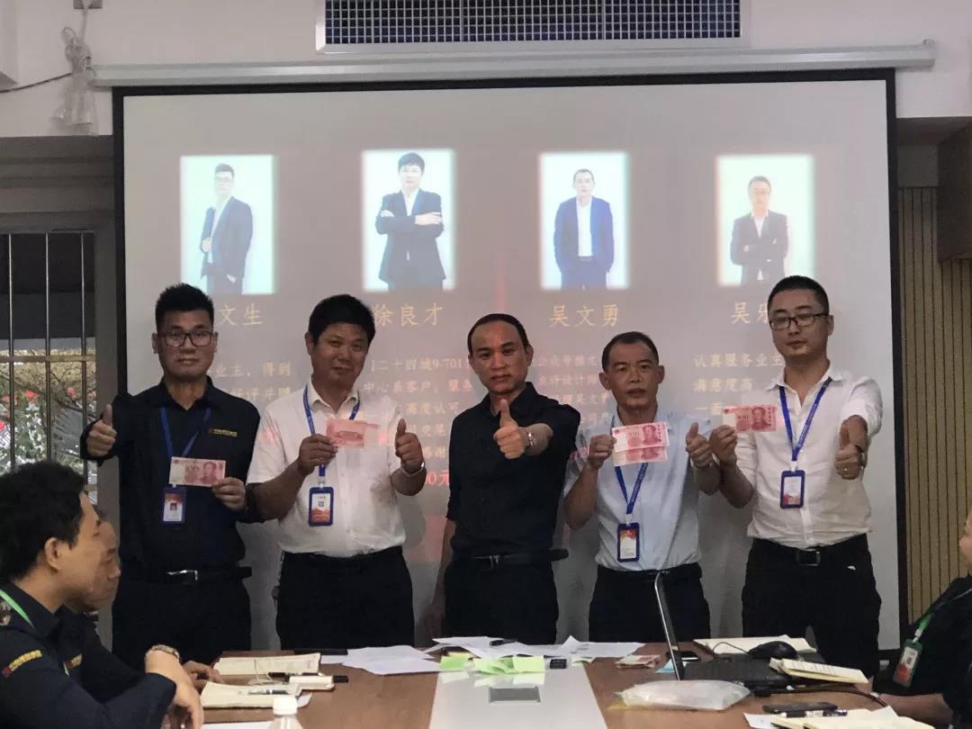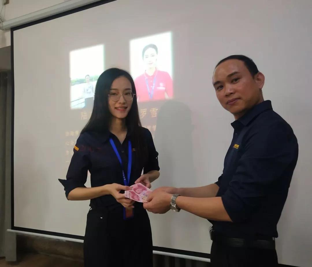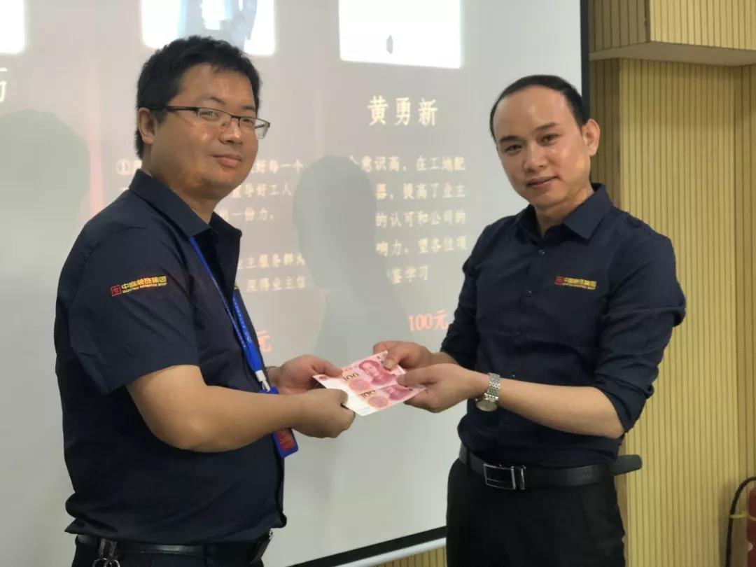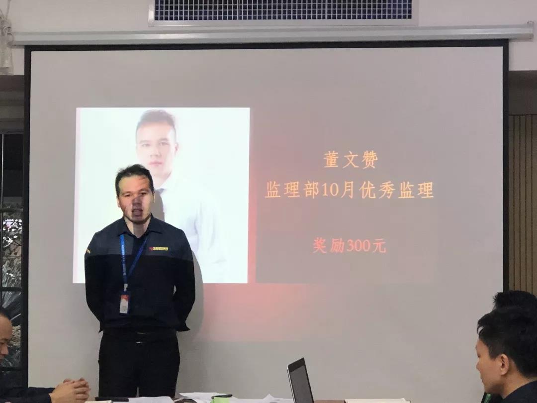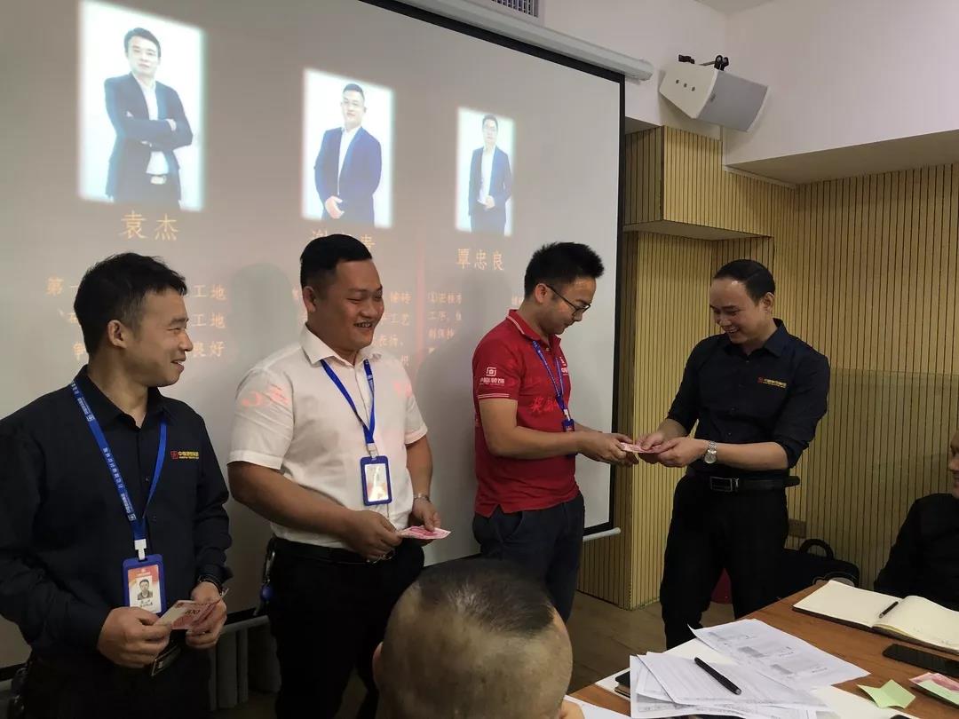工程質(zhì)量管理中心總經(jīng)理吳文戰(zhàn)給10月表現(xiàn)優(yōu)秀的家人頒發(fā)獎勵: