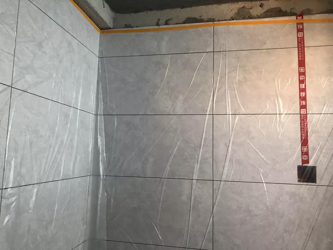 ▲每個(gè)區(qū)域鋪貼完畢后必須用薄膜封閉,并關(guān)閉貼磚區(qū)域的門(mén)窗,防止風(fēng)干過(guò)快。