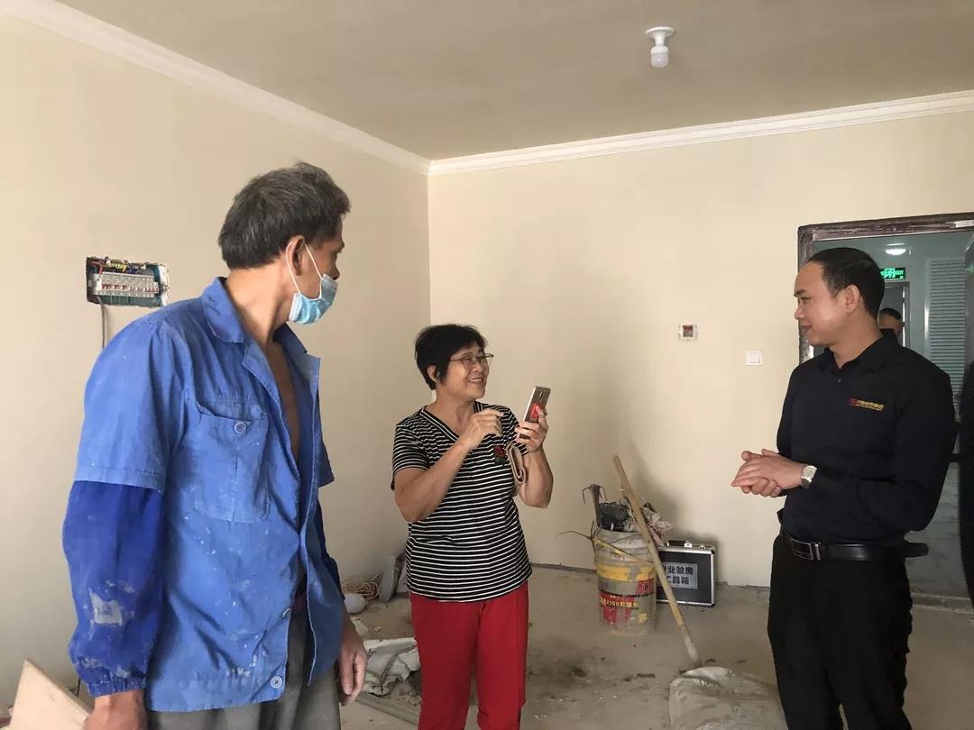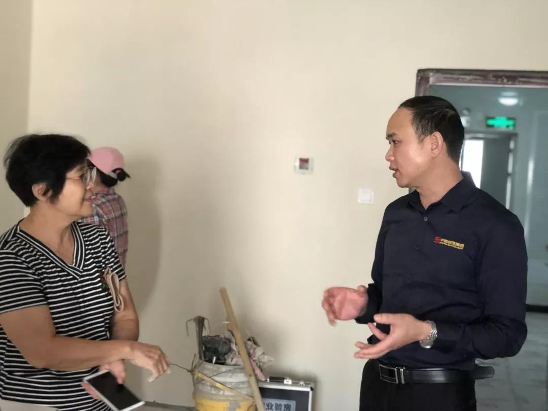 ▲吳總現(xiàn)場(chǎng)和業(yè)主了解裝修滿(mǎn)意度,業(yè)主表示非常滿(mǎn)意