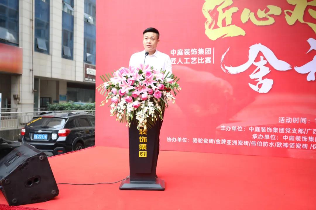 11月15日上午,由集團黨支部主辦,質(zhì)管中心承辦,以“匠心對弈 舍我其誰”為主題的中庭裝飾集團2020年匠人工藝比賽在集團總部盛大召開,出席本次活動的領(lǐng)導和嘉賓有廣西建筑裝飾協(xié)會副秘書長兼施工委主任譚謙,中庭裝飾集團總裁丁胡、集團副總裁金洪路、集團副總裁張浩熙、集團副總裁兼工程質(zhì)量管理中心總經(jīng)理吳文戰(zhàn)、集團總裁助理黃志輝等,共同見證本次工藝比賽啟動。