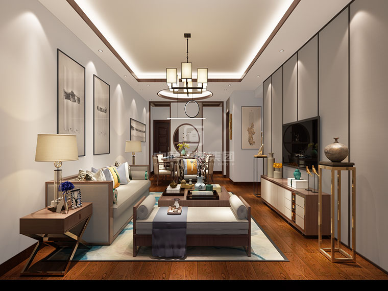 湖畔書苑120㎡新中式風(fēng)格案例