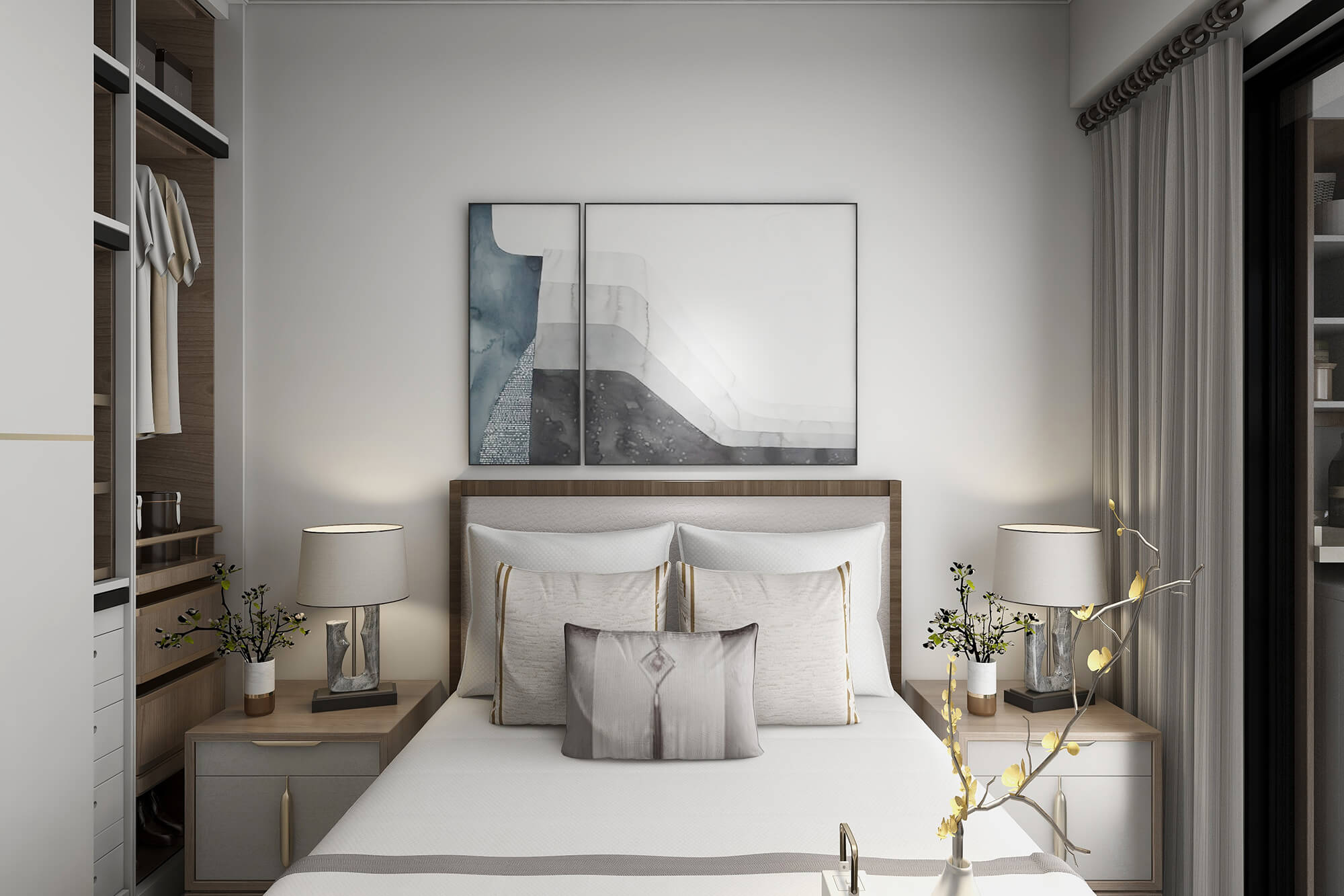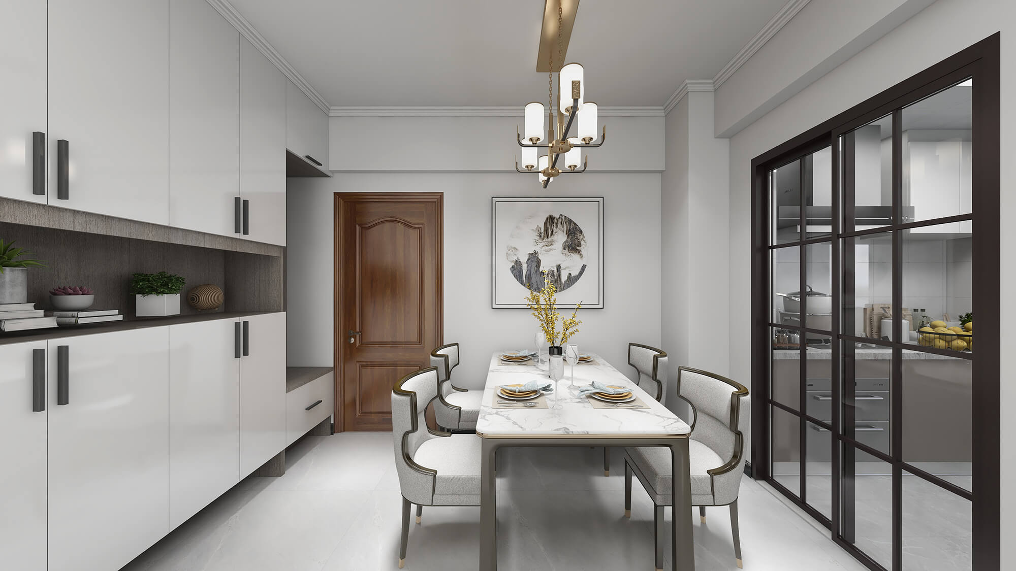 瀏覽量:568本案戶型為:3房2廳2衛(wèi),總面積72㎡。本案風(fēng)格為新中式,在空間中以淺灰色為主色調(diào),將中式元素以生活的面目表達(dá)出來。在造型、擺件等上面采用一些中式手法,為空間增添高雅秀逸的意境美,使得整體空間賞心悅目,并充滿韻味。