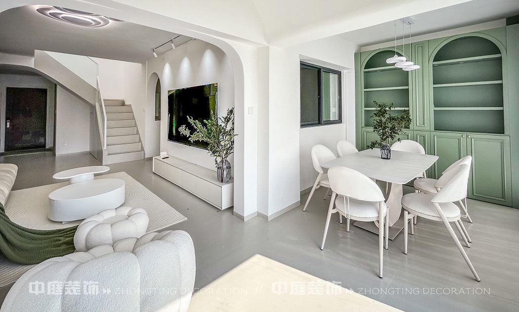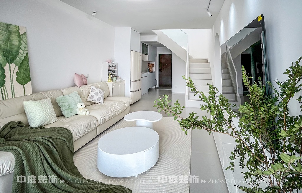 瀏覽量:134這一套綠意盎然的奶油風格好似把森林搬進了家,軟乎乎的奶白沙發(fā)搭配苔蘚綠毛毯,抱枕選了粉綠撞色,往上面一躺,一天的疲憊都被融化了!圓潤的白色組合茶幾,顏值與實用并存,氛圍感直接拉滿。墻面掛畫大葉綠植藝術畫,角落擺放鮮活綠植,將自然綠意融入空間。